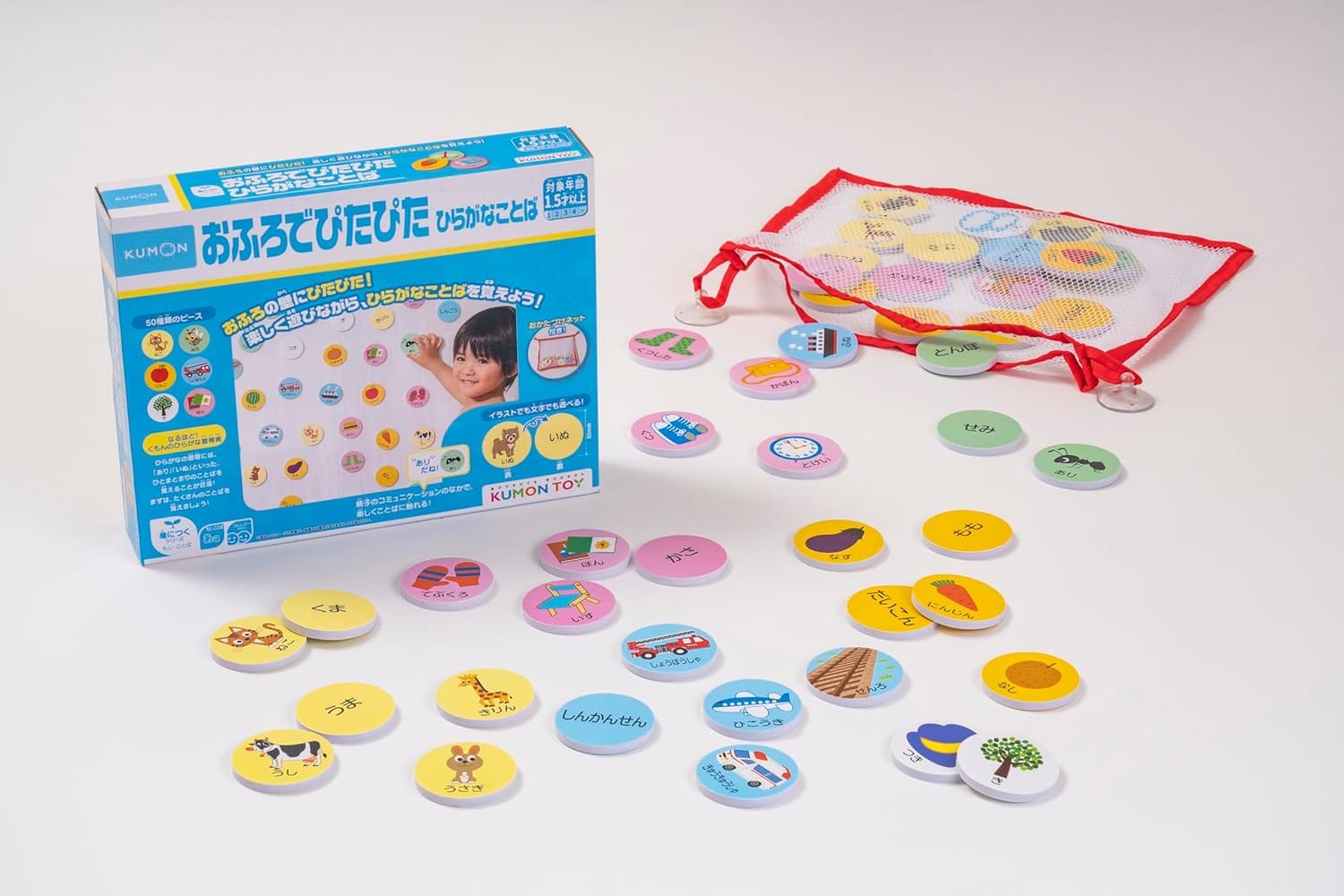 それが、くもんから出ている「おふろでぴたぴた ひらがなことば知育玩具」です。その名の通り、ひらがなを覚えさせるための知育おもちゃです。
