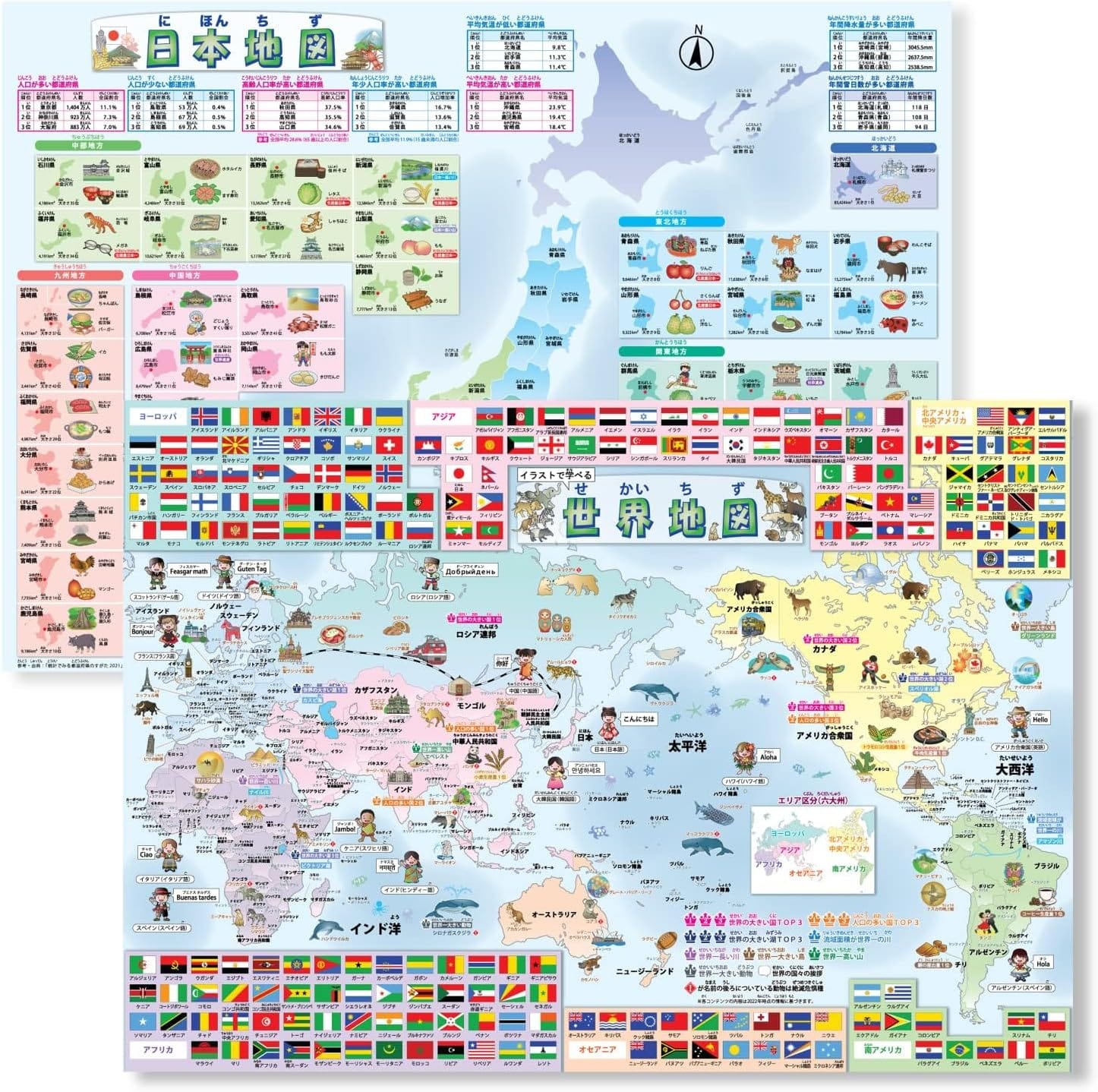 Amazonでは一番売れている地図ポスターで、世界地図と日本地図がセットになっています。