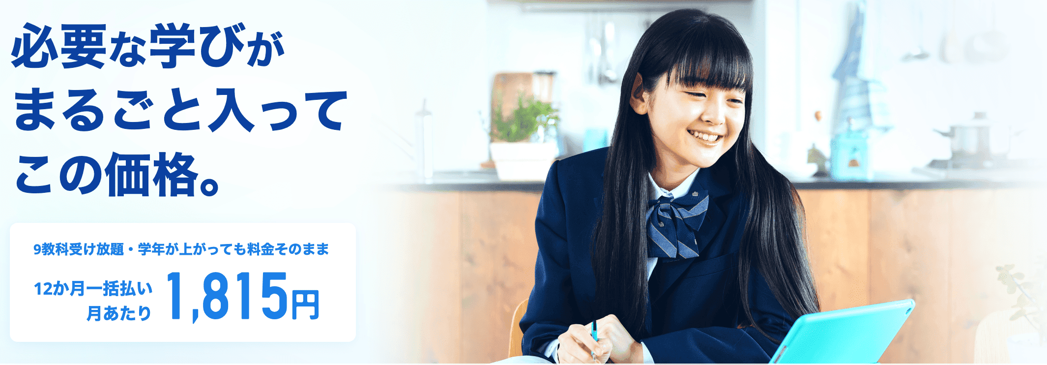 「学校の授業に追いつけない」「でも今さら塾は…」そんなご家庭にまず提案したいのがスタディサプリ。月額2,000円台で小1〜高3までの全教科が学び放題という圧倒的なコスパと、プロ講師による高品質な映像授業が特長です。