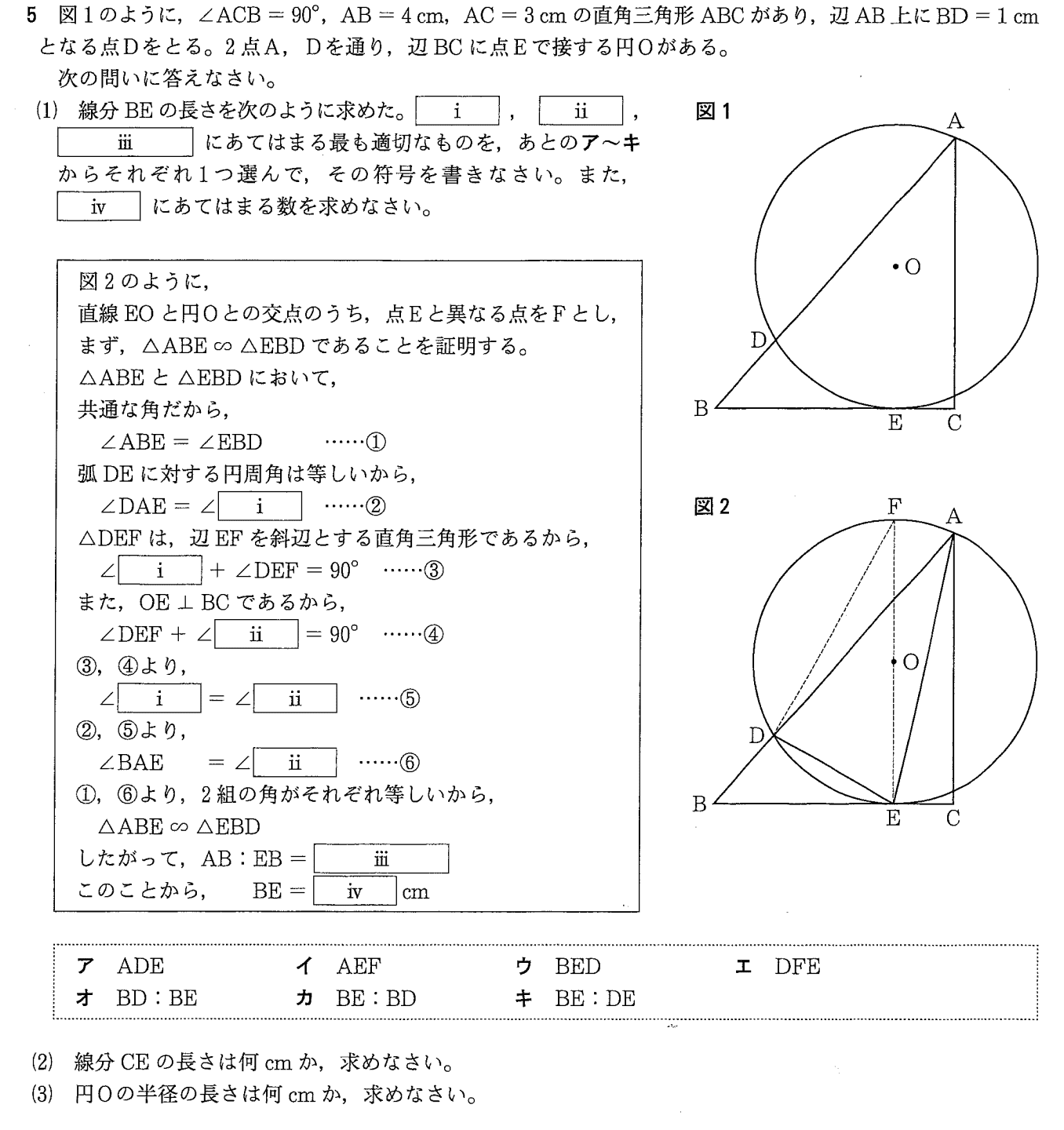基本的には(1)で証明問題の穴埋めが出題されます。兵庫は完全記述のタイプの問題は出題されず、すべて記号穴埋めで許してくれるのでイージーです。