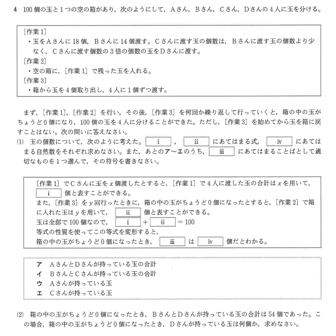 だから、塾としてもこの最後の大問だけは再現性高く対策ができないから、ある程度は生徒を選ばないと高得点など取らせられるわけもなく、読解力や数的センスがない子はこの大問はドボンです。