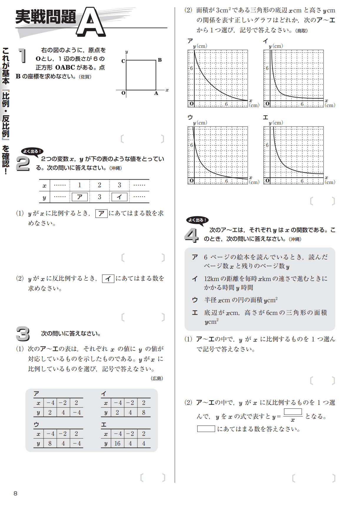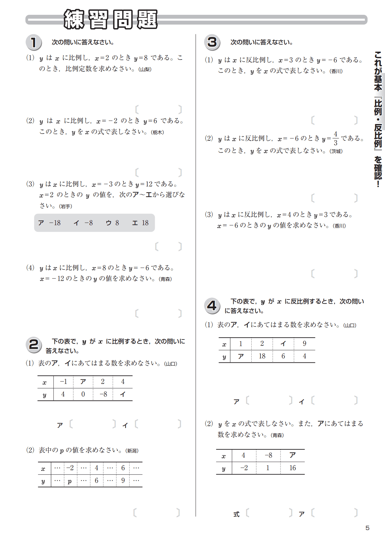 導入で基礎基本技を演習する部分があり、その後は「実践演習」という問題ページで各都道府県で出題された関数の良問を大量に収録しています。