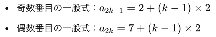 • 奇数番目:2,4,6,… → 等差数列(差 2)