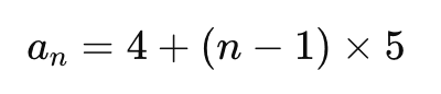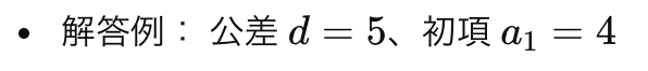 練習問題1:数列 4,9,14,19,… の n 番目を求めてみましょう。