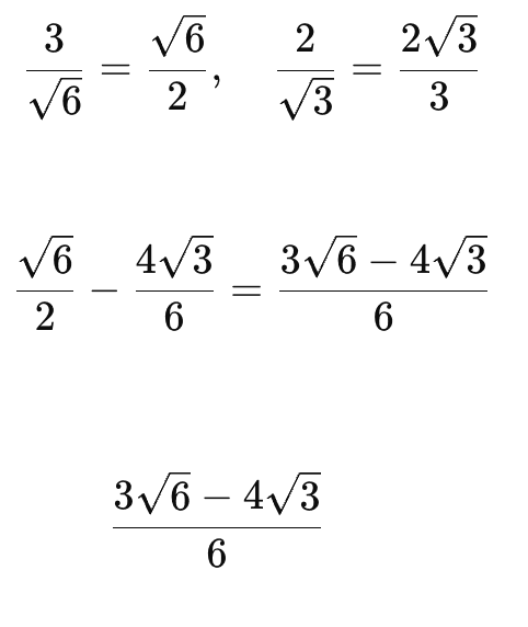 - ルートを簡単化 → 通分 → 有理化の順に進める。