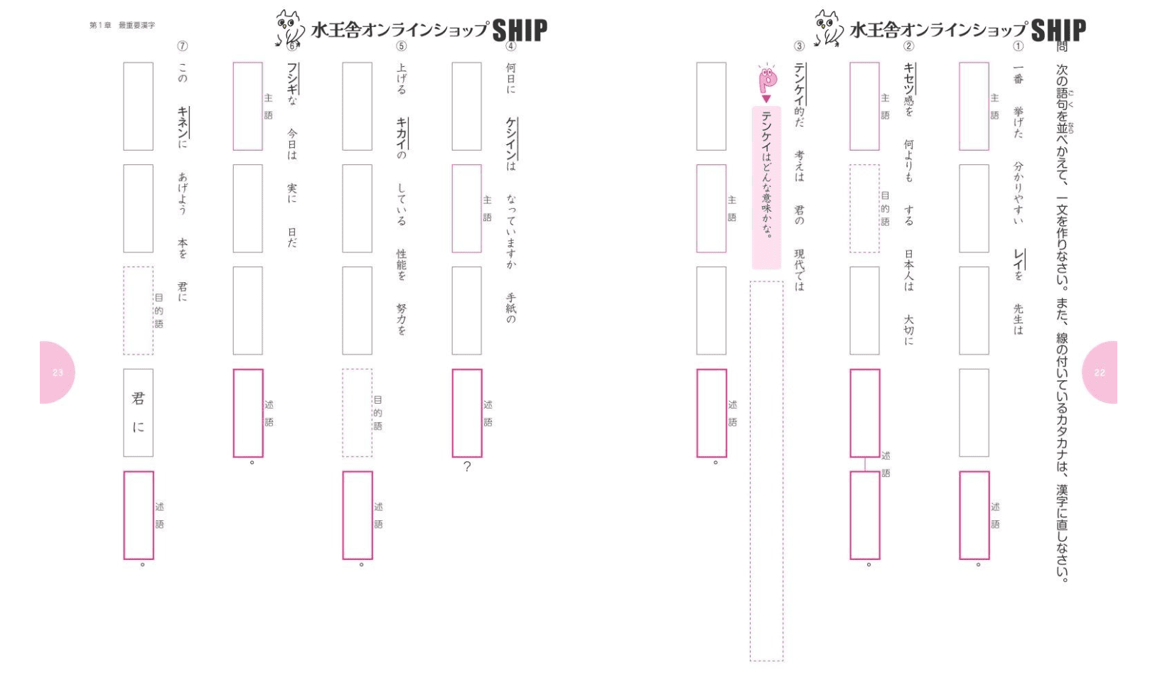これって、漢字の練習させながら「主語」「述語」を意識して日本語の言葉の並び替えの問題までさせているんですよね。これが本当に効果抜群。