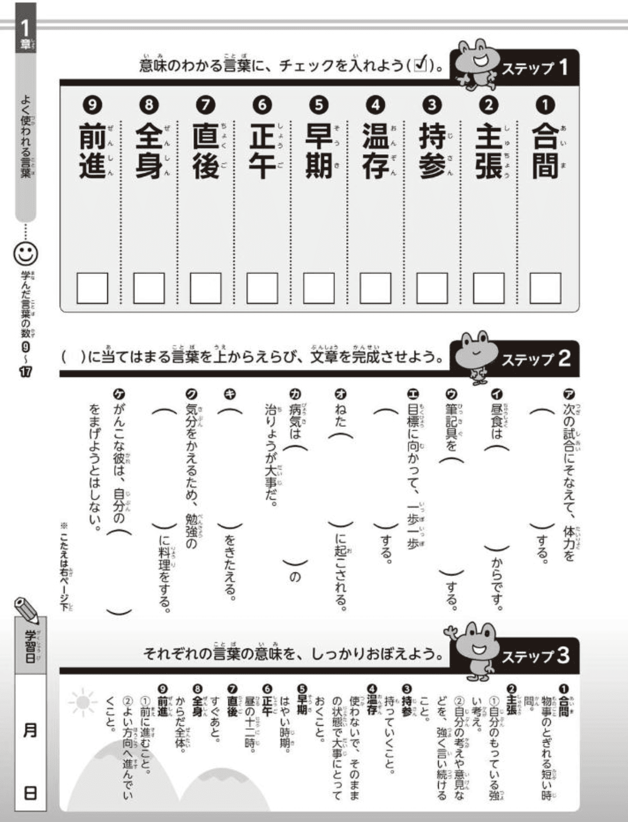 こちらは熟語問題集で、語彙力アップを目的としている教材です。なので、厳密に言えば漢字ドリルではありません。
