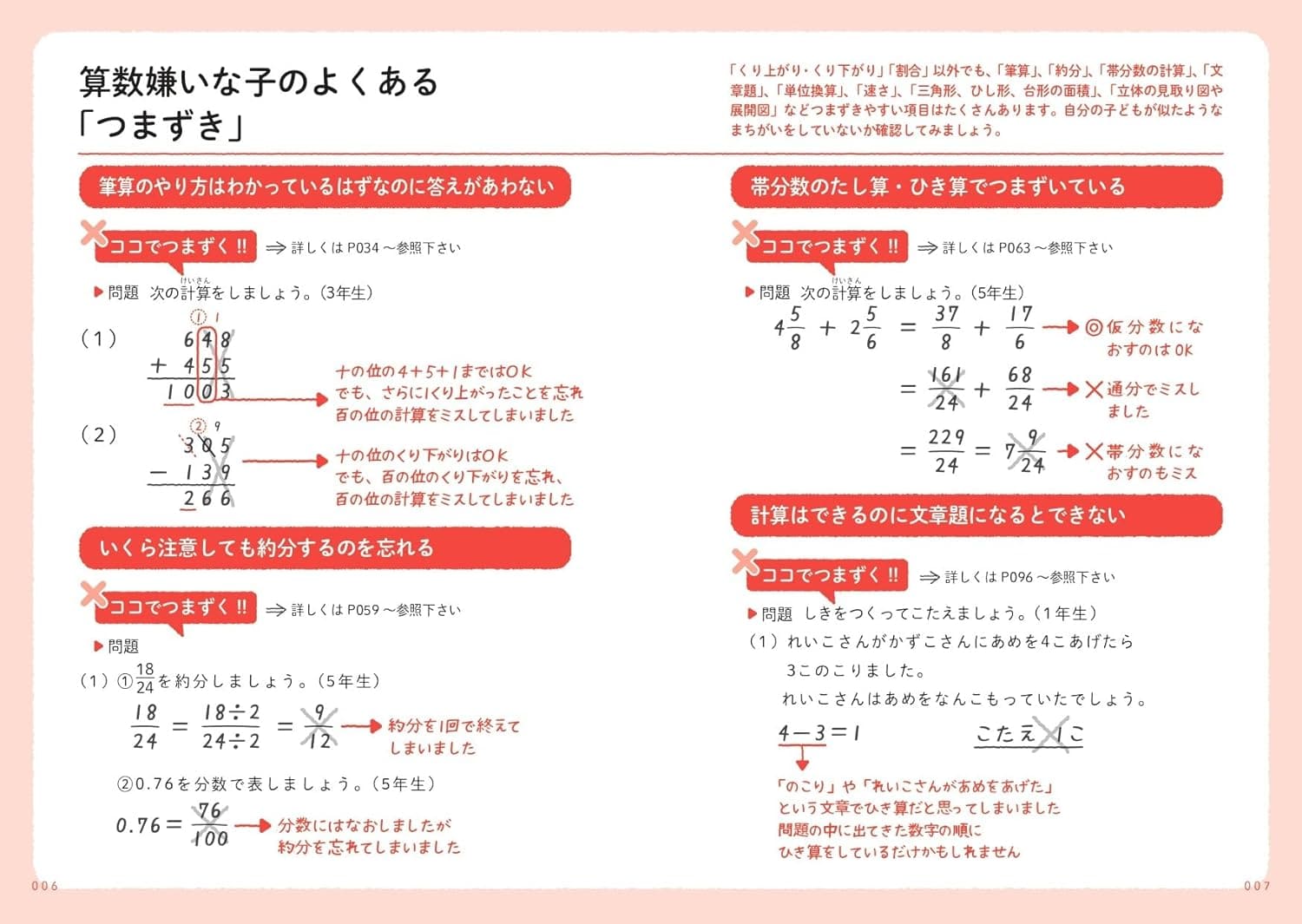 子供が算数でつまづくポイントって大体決まっていいます。そんなつまづくポイントを一覧でまとめてくれているのがこの本。