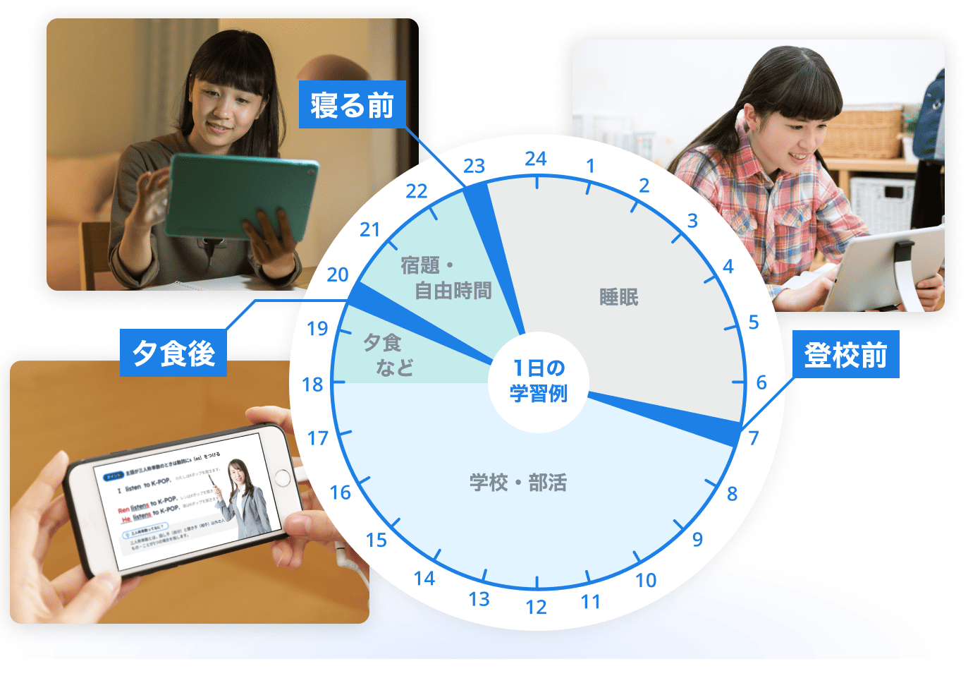 | 1本15分、スキマ時間学習 | 部活の合間や移動中にも学習可能。無理なく日常に勉強を組み込める |