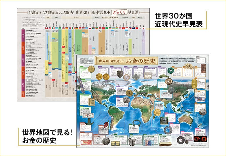 | 全巻購入限定特典 | 学習年表・別冊資料集 | 世界史人物カード・近現代図解資料 |
