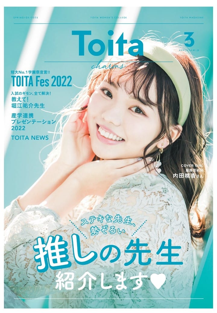 戸板女子短期大学のパンフレット「TOITA charms」は、まるで女性ファッション誌のようなデザインで高校生に人気を博しています。